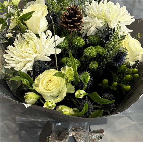 It will include a range of fresh, seasonal flowers. Colours and flowers will vary.